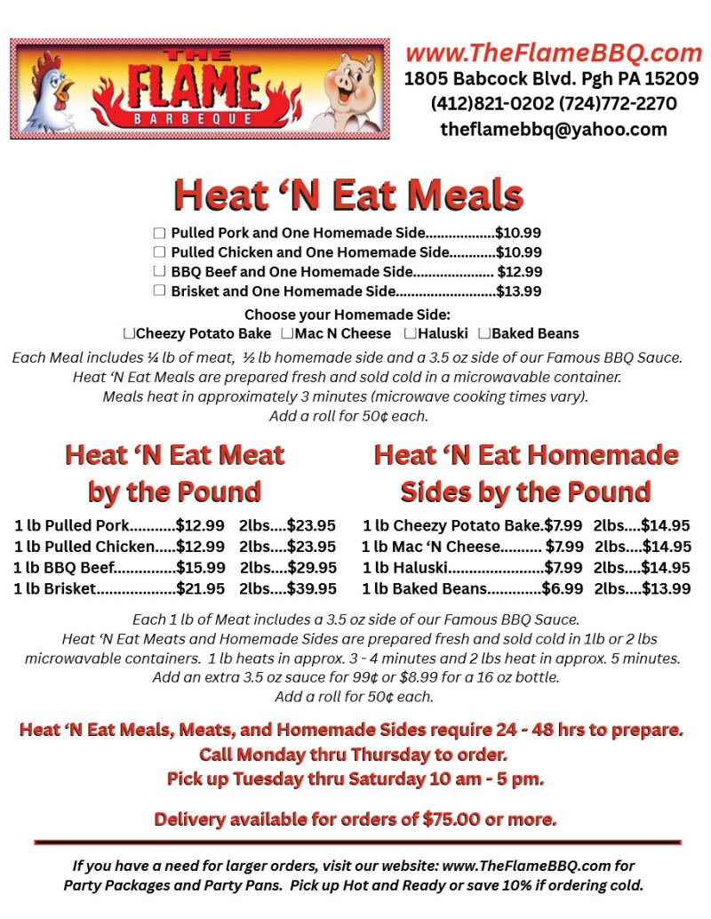 Party Pans and Party Packs for catering orders only. Our regular walk-in menu is unavailable until further notice. Thank you for your understanding - we look forward to serving your gatherings with our signature BBQ favorites!
